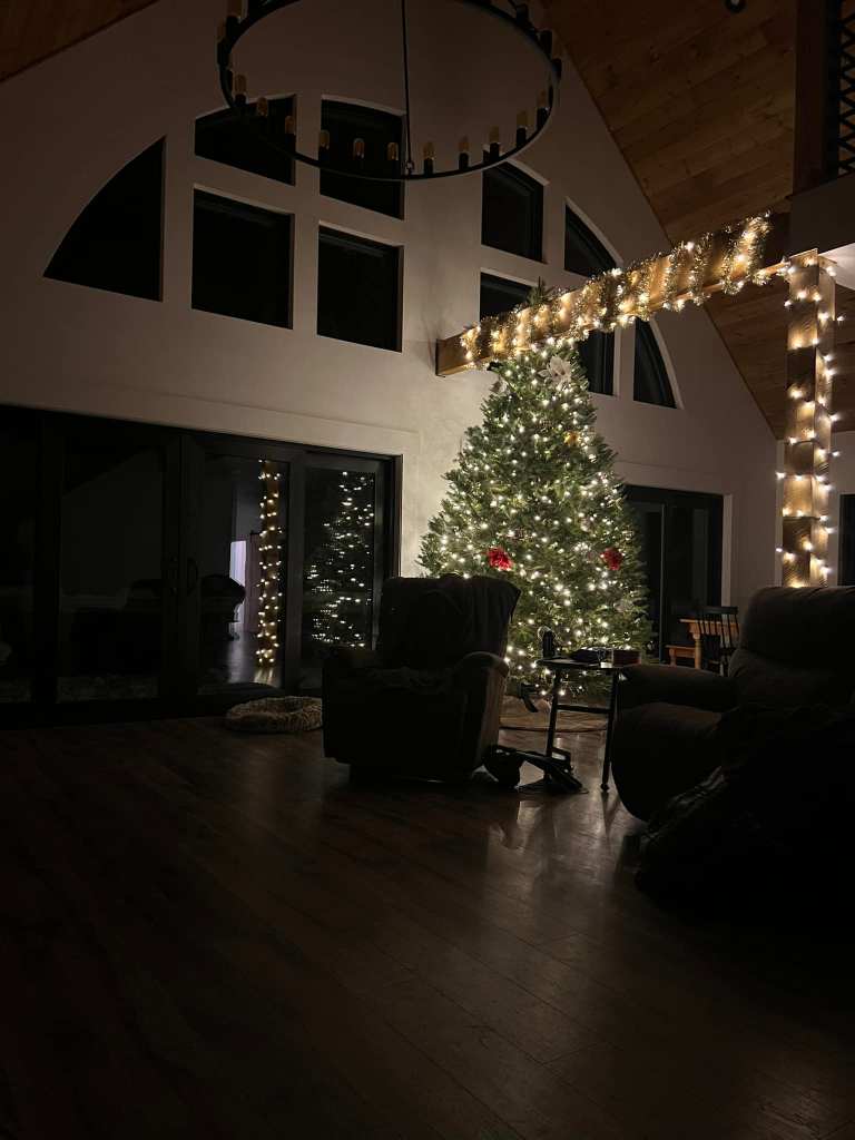Our dream home provides an open floor plan to capture as many moments as we can together before the kids move into their full independence. It also hosts the kids rooms upstairs with their own bathroom and a loft for extra space. The first floor has cathedral ceilings in the living room and dining room that is met by a gable wall full of windows and large 4 panel sliding doors. The doors open to a large deck overlooking 4 acres of our land. Plenty of space inside and out for family activities.